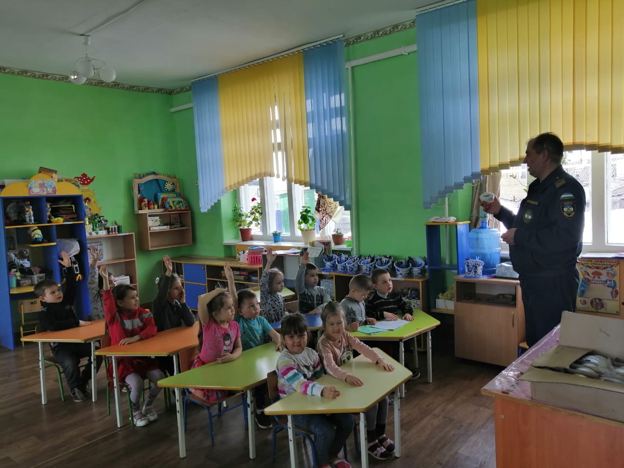 6 апреля 2022 инструктор Госкомитета РБ по ЧС Брусенков Сергей Николаевич провел занятие в детском садике с. Верхние Услы по автономным пожарным извещателям.