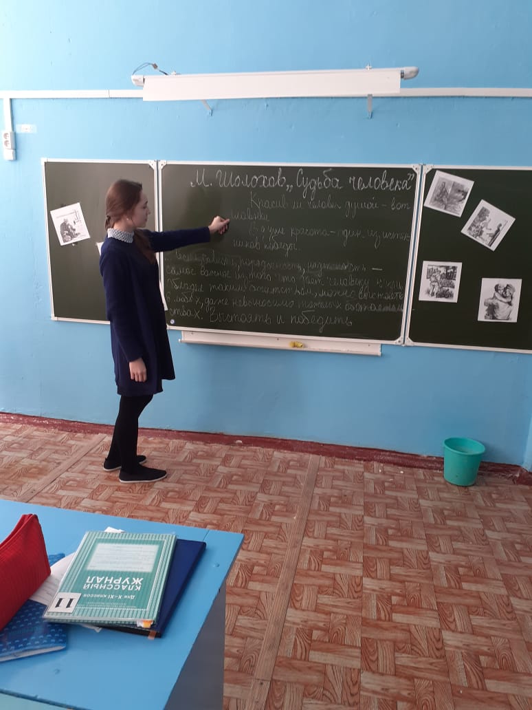 На уроке обучающиеся выступали сообщениями о зверствах фашизма, говорили о красоте души человека. Произведение даёт понять, насколько ужасна была война, и что она принесла людям, жившим в ту эпоху. В конце беседы учащиеся сделали вывод о том, что, получив разочарование и нестерпимую душевную боль от потери любимых, главный герой произведения Андрей Соколов не становится черствым и злым человеком, он не разочаровывается в людях, по-прежнему способен им доверять, радуется мелочам жизни и старается воспитать достойного человека, в котором видит смысл своей новой жизни. В этом и видят ребята истинную красоту души человека. Произведение получилось ярким, реалистичным, наполненным философским смыслом и очень откровенным. Это одно из произведений, которое воспитывает современную молодёжь.