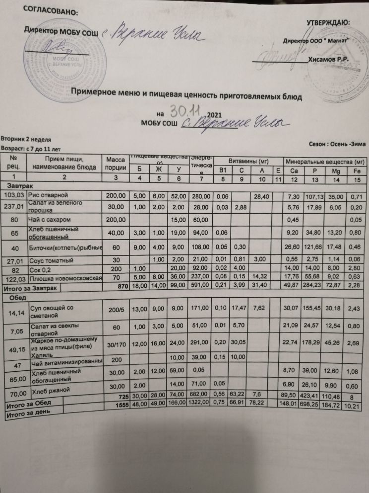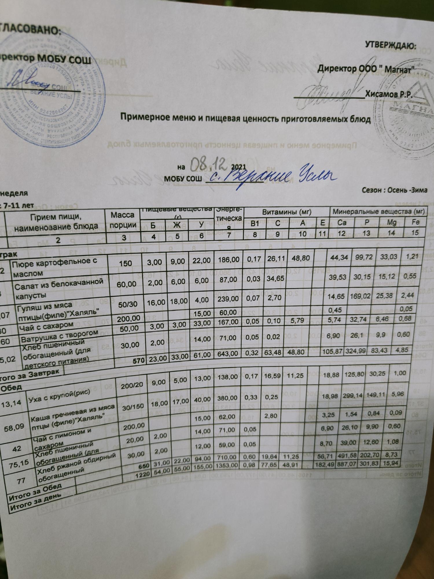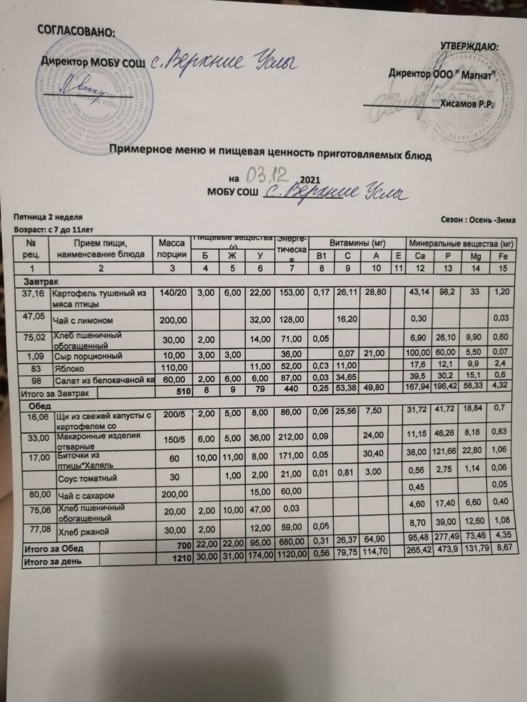 Стоимость школьного питания