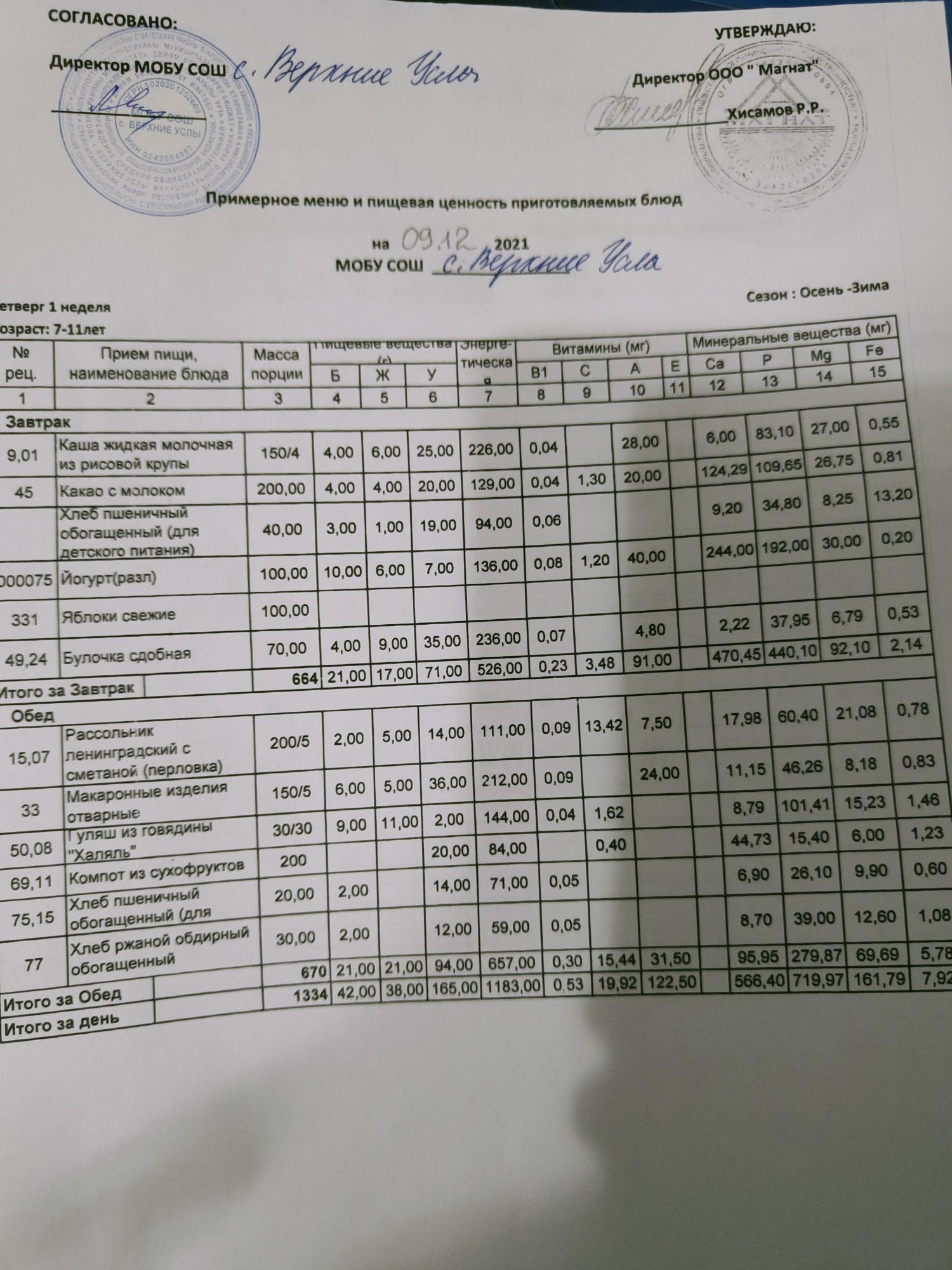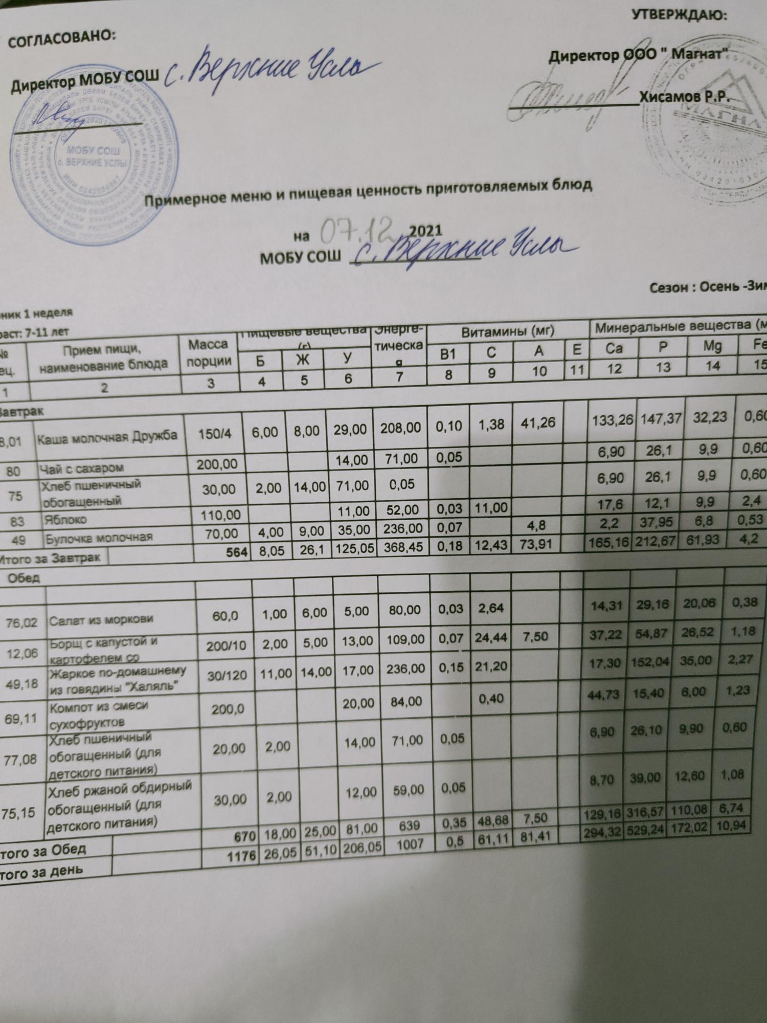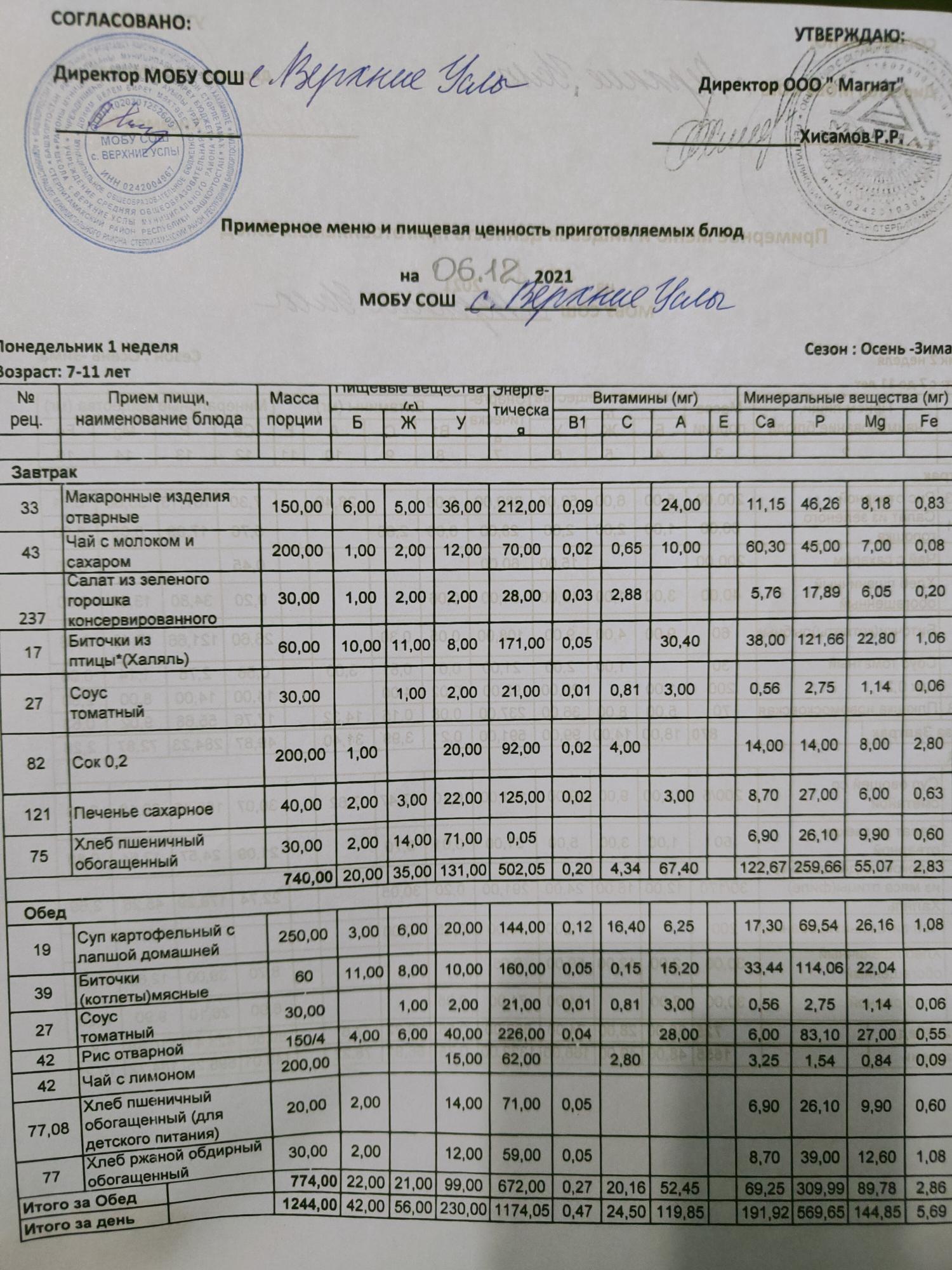 Стоимость школьного питания