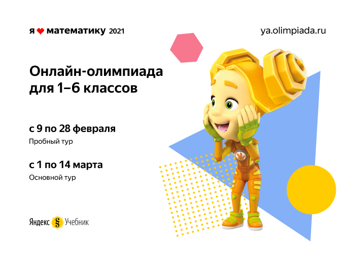 Начинается регистрация на ежегодную онлайн-олимпиаду «Я люблю математику» для учеников 1-6 классов. Ее подготовил Яндекс.Учебник в рамках Образовательной инициативы вместе с Центром педагогического мастерства Москвы и проектом «Фиксики». Задача олимпиады — увлечь детей математикой с помощью нестандартных задач и интерактивного формата.
