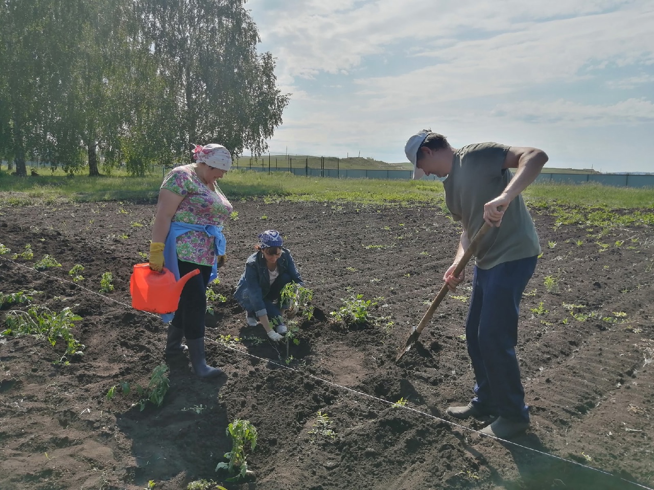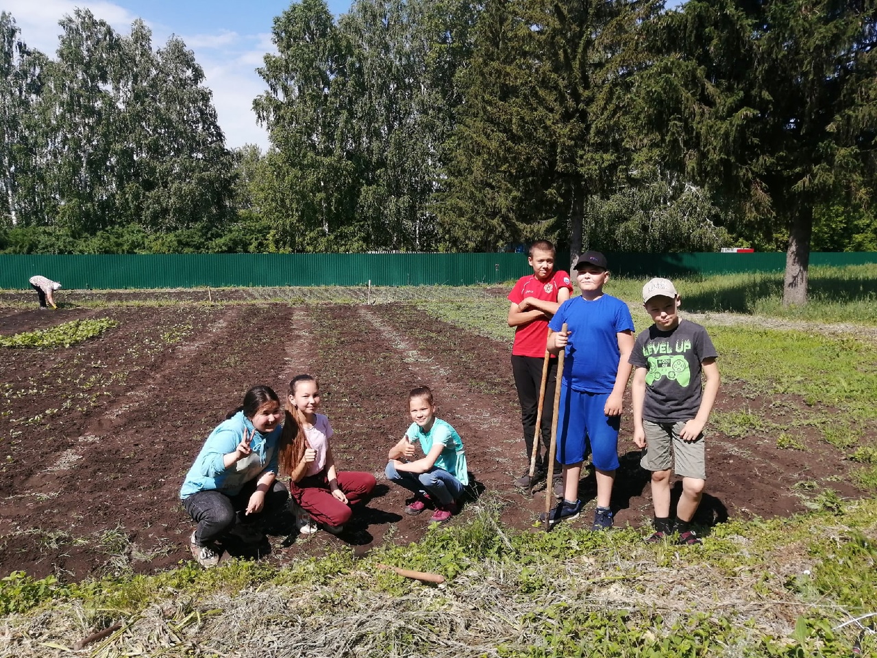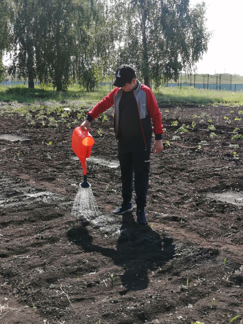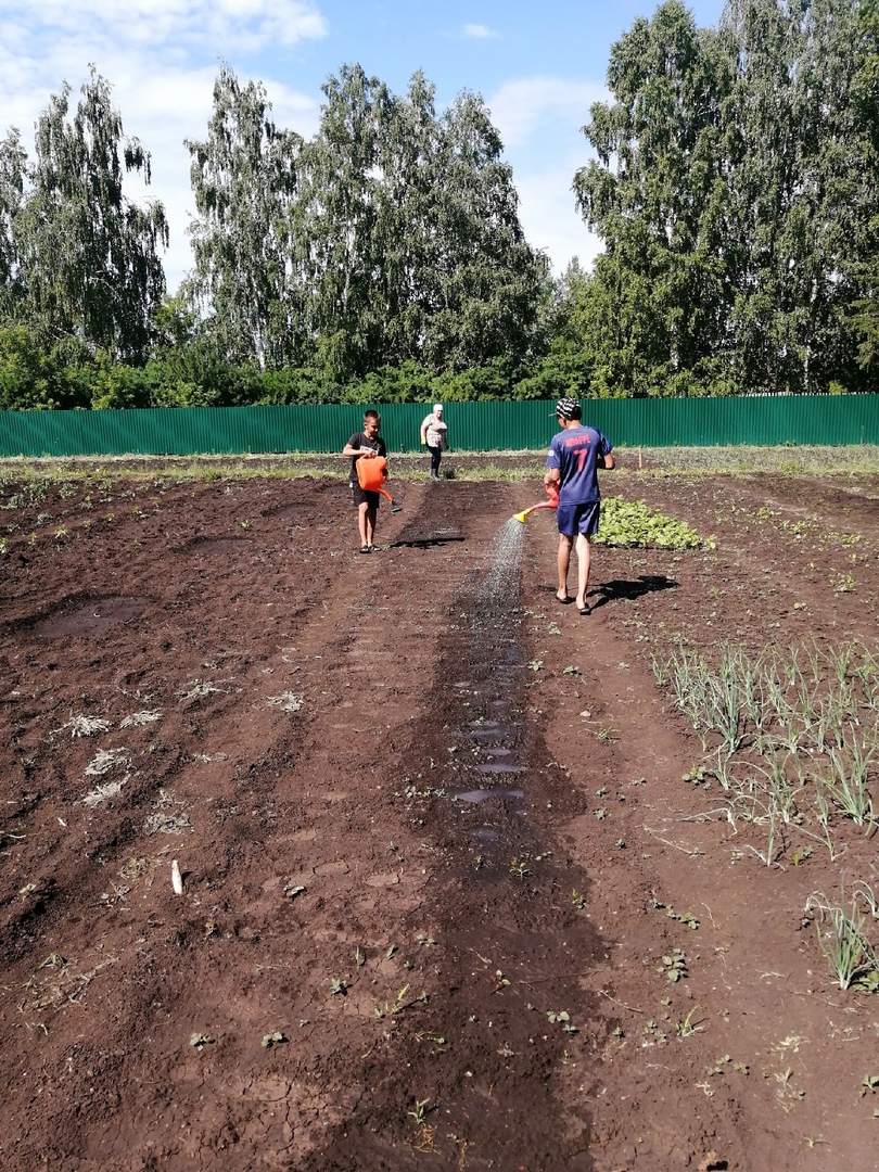 Учителя и учащиеся нашей школы ежедневно проводят работу по благоустройству школьного двора и выращиванию овощей на огороде для нашей столовой. Ребята выращивают: свеклу, морковь, капусту, картошку, помидоры, перец, огурцы, редиску. Ученики ежедневно поливают, пропалывают грядки. Овощи в нашем огороде экологически чистые. Дети под руководством учителя биологии Худайбердиной Р. А. добросовестно трудятся на пришкольном участке, а также ухаживают за цветами посажеными возле фасада школы. Благодаря их заботе наш школьный двор цветущий, красивый и чистый.