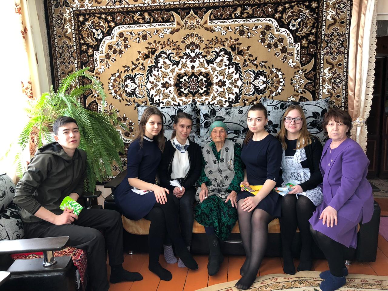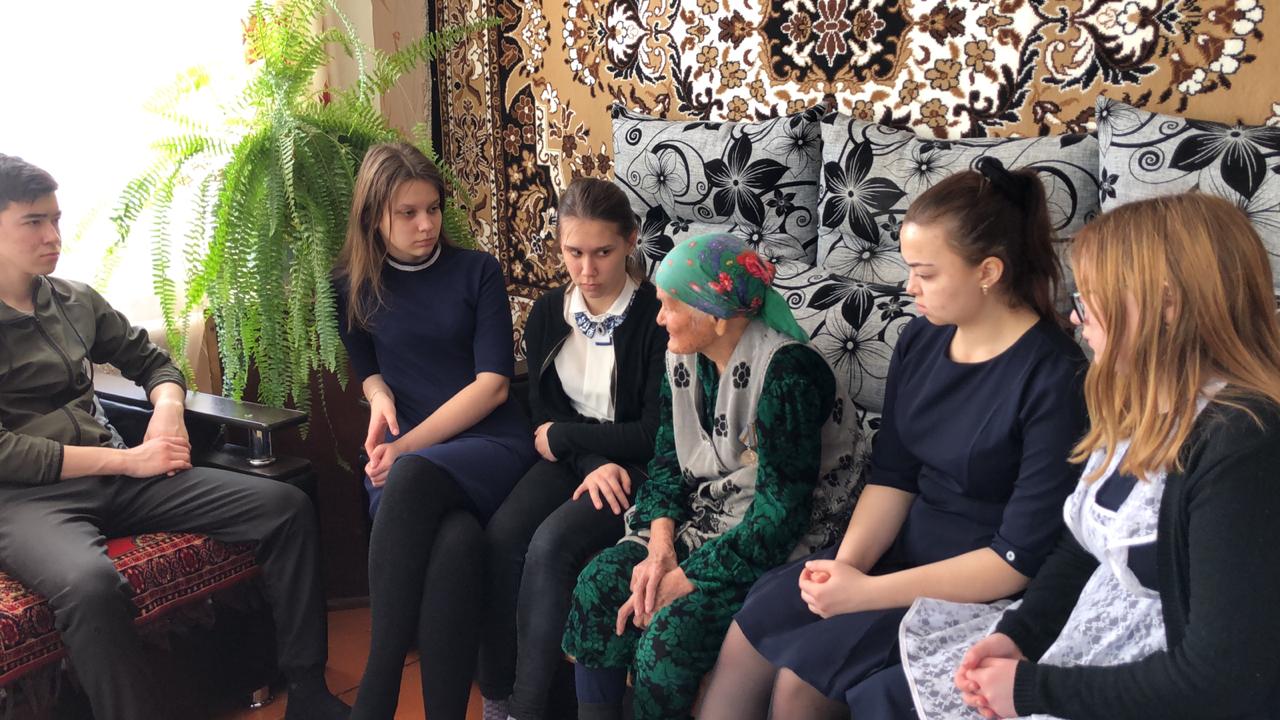 05.03.2020 г 10 класс вместе с классным руководителем посетили ветерана труда нашего села – Кинзябулатову Фатыму Макаримовну ( 18 сентября 1924 г.р.). В знак глубокого уважения и внимания к людям старшего поколения они провели акцию «Ручеёк милосердия», поздравили пожилого человека с добрым и светлым праздником – Днём добра и уважения. Разные люди - разные судьбы. Глядя в добрые глаза пожилых людей, не перестаёшь удивляться их оптимизму, умению радоваться каждому прожитому дню и быть благодарными за прожитые годы. Несмотря на свои года они дарят душевное тепло своим близким, окружающим их людям. И очень радуются той толике внимания, которую им дарят нежданные гости. В теплой непринужденной беседе она рассказала о годах своей молодости и юности, прочитала дога. Пенсионерка поблагодарила гостей и пригласила на чашку чая. Замечательно, что такие встречи оставляют приятное впечатление и у хозяев, и у гостей. Это значит, что связующая нить поколений остается неразрывной и крепкой. До глубины души труженицу тыла тронула доброта и забота детей. Она искренне благодарила ребят, что не забывают тех, кто ковал победу в тылу в годы самой страшной войны, навещают, дарят душевное тепло. Ученики поблагодарили ветерана за героический труд и за право сегодняшнего поколения жить под мирным небом, пожелали крепкого здоровья, долголетия, бодрости духа. Давайте уважать, любить и ценить пожилых людей, их жизненный опыт и мудрость. Ведь пожилые люди нуждаются в нас, в наших ласке и тепле.