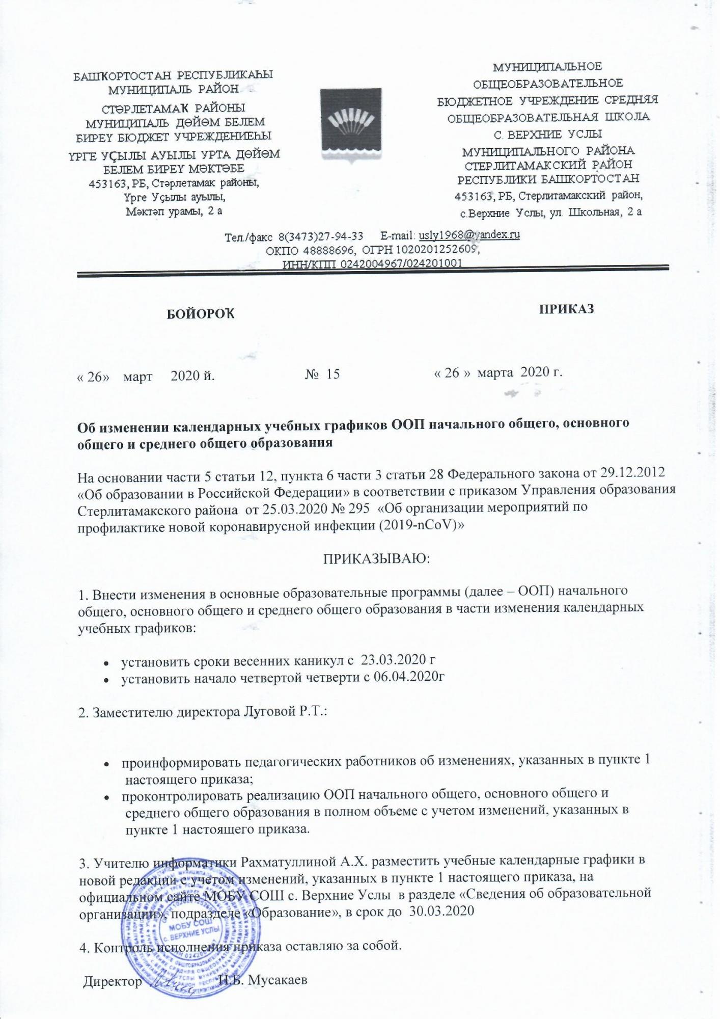 Приказ МО РБ от 18.03.20 №339 "Об организации образовательного процесса в общеобразовательных организациях".